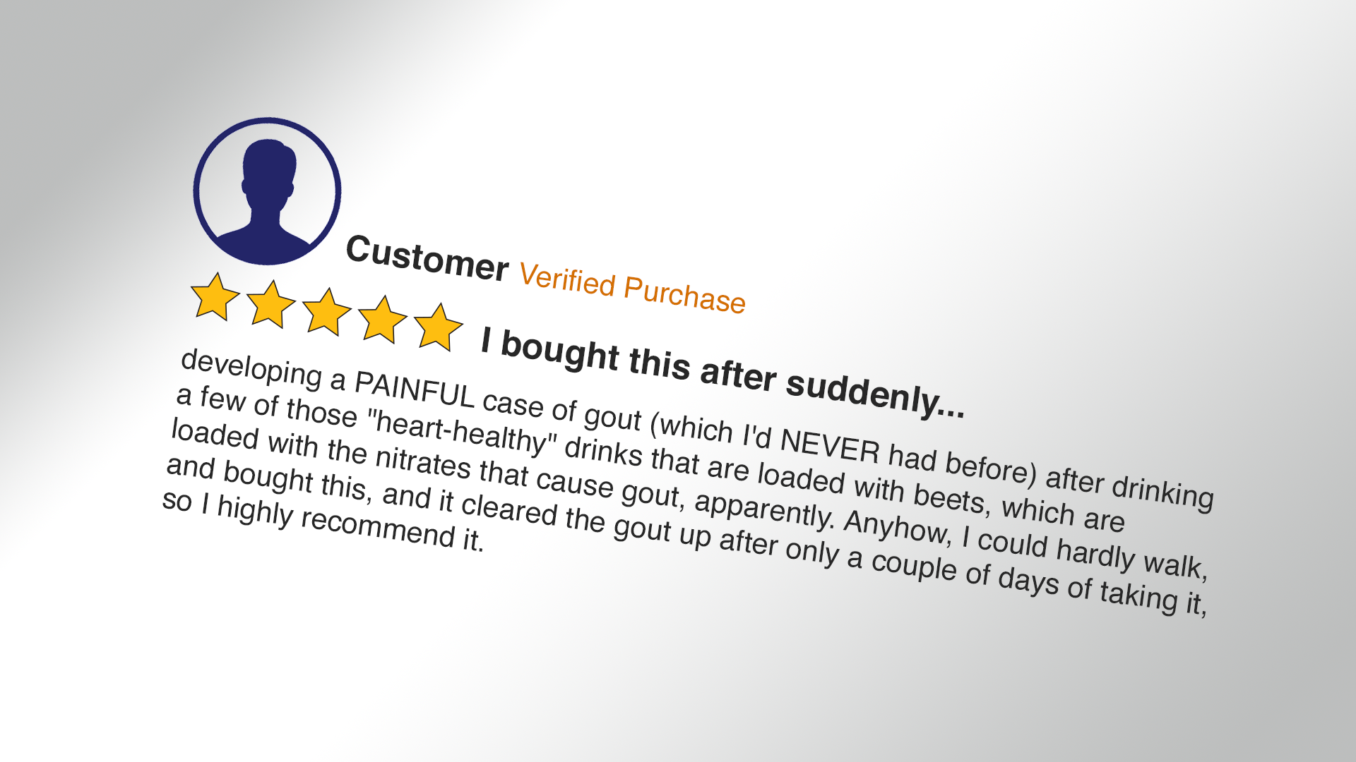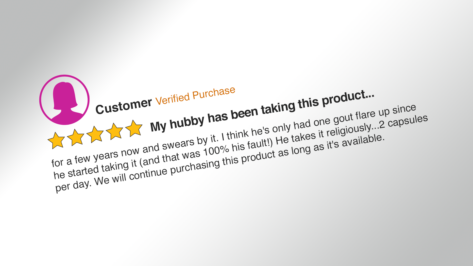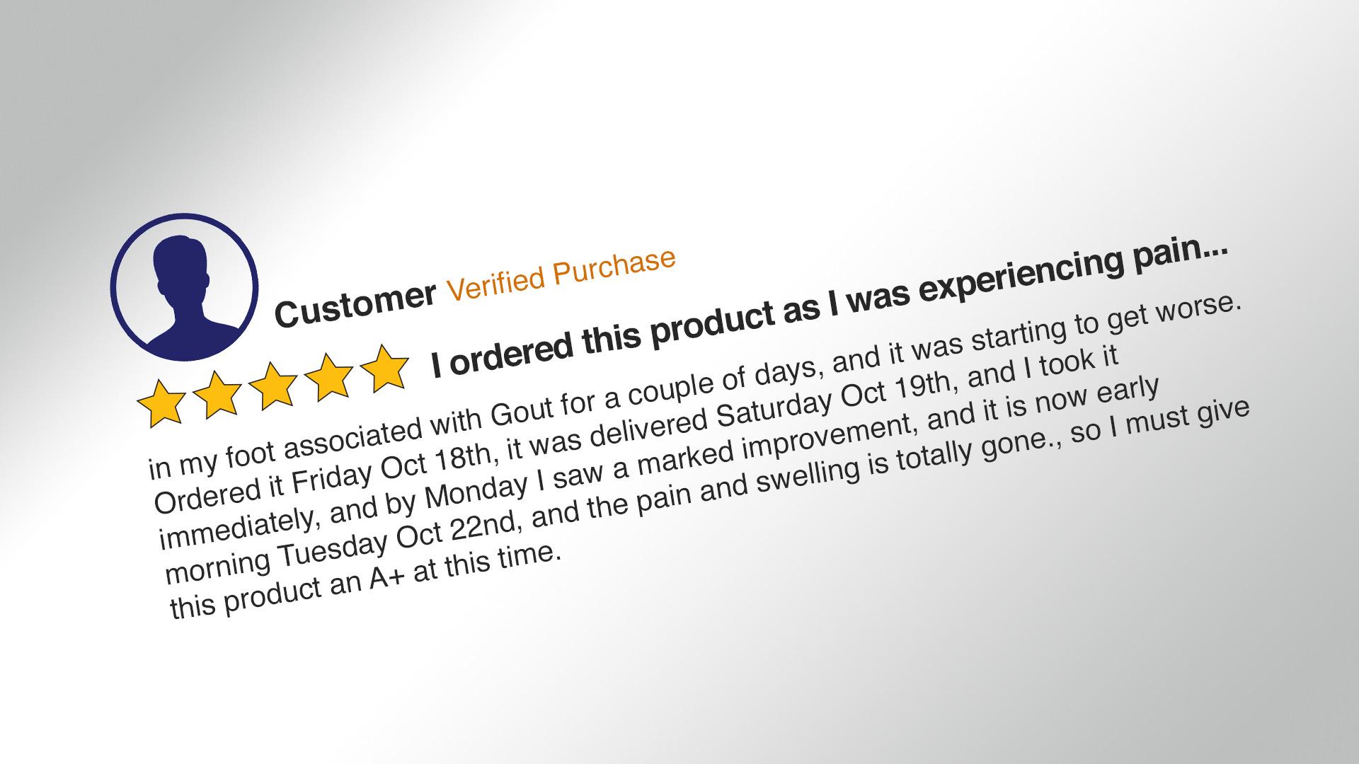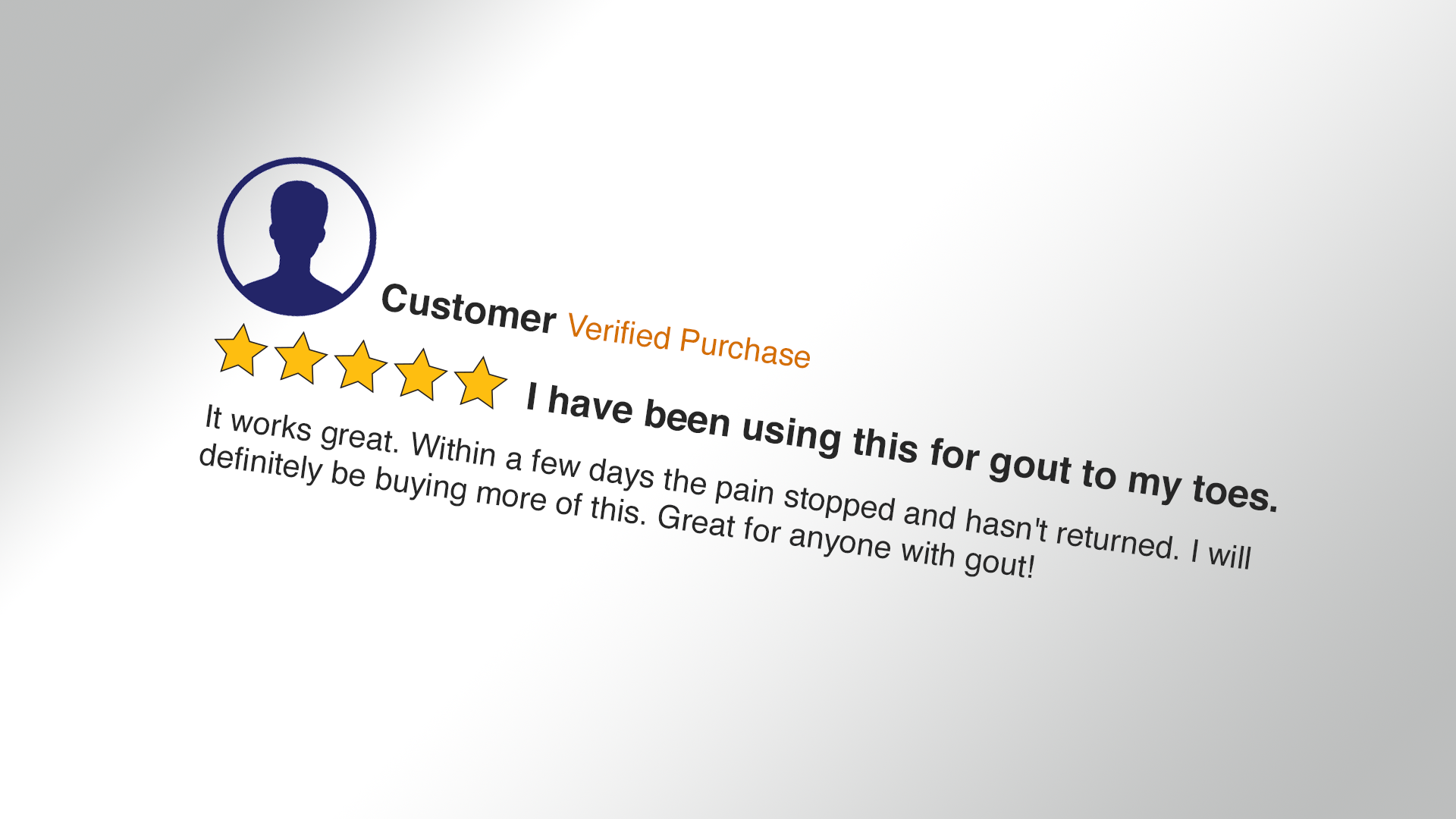 ✔ NO MORE BIG RED TOE... IT WORKS!Aiden says, "I'm 51 and I've suffered with flare ups for about 10 years. It targets my big toe and the pain is so intense that I can't even stand to have a sheet touch it-- much less put on a shoe or walk. I'm completely down when I get an attack. I was given meds from the doctor for treatment, which makes me really sick to take. But since I've had URIC GO I'm good to go. NO MORE FLARE UPS and NO MORE PAIN!"